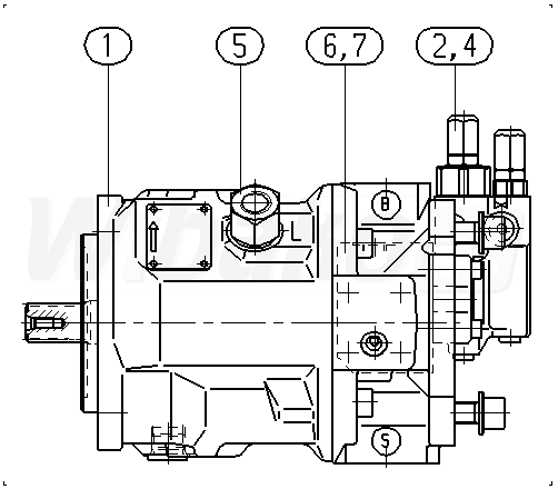 Axial piston variable pump A10V, swashplate design, open circuit, nominal pressure 280 bar, maximum pressure 350 bar. Series 31. Geometric displacement 28 cm3. Pressure controller with flow controller, hydraulic, X-T plugged with flushing function. Drive splined shaft ANSI B92.1a for higher input torque. Mounting flange ISO 3019-1 (SAE) 2-hole. SAE flange ports according to J518. Working ports metric. Fastening thread metric; lateral top bottom for through drive. Through drive. Flange ISO 3019-1 101-2 (B) . Hub for splined shaft 7/8 in 13T 16/32DP.