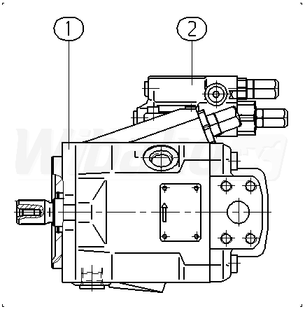 Axial piston variable pump A10VO, swashplate design, open circuit, nominal pressure 250 bar, maximum pressure 315 bar. Series 52. Geometric displacement 28 cm3. Pressure controller with pressure cut-off, hydraulic, remote controlled. Directions of rotation: counter-clockwise (viewed on drive shaft). Splined shaft ISO 3019-1, standard. Mounting flange ISO 3019-1 (SAE) 2-hole. SAE flange ports, fastening thread metric, laterally opposite, for through drive. Without through drive.