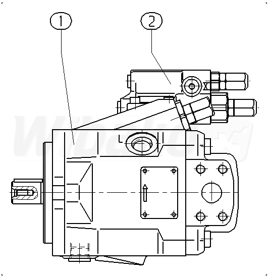 Axial piston variable pump A10VO, swashplate design, open circuit, nominal pressure 250 bar, maximum pressure 315 bar. Series 52. Geometric displacement 28 cm3. Pressure controller, hydraulic. Directions of rotation: counter-clockwise (viewed on drive shaft).