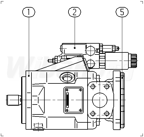 Axial piston variable pump A10VO, swashplate design, open circuit, nominal pressure 250 bar, maximum pressure 315 bar. Series 52. Geometric displacement 28 cm3. Pressure controller, electric, negative control, U = 24 V. Directions of rotation: clockwise (viewed on drive shaft). Seal: FKM (fluoroelastomer). Splined shaft ISO 3019-1, standard. Mounting flange ISO 3019-1 (SAE) 2-hole. SAE flange ports, fastening thread metric, laterally opposite, for through drive. Through drive flange ISO 3019-1 101-2 (B) , hub for splined shaft 7/8 in 13T16/32DP. DEUTSCH - molded connector, 2-pin, without suppressor diode (for electric control).