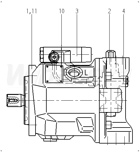 Axial piston variable pump A10V, swashplate design, open circuit, nominal pressure 280 bar, maximum pressure 350 bar. Series 31. Geometric displacement 45 cm3. Pressure-flow power control. Drive splined shaft ANSI B92.1a. Mounting flange ISO 3019-1 (SAE) 2-hole. SAE flange ports according to J518 Working ports UNF. Fastening thread UNF; lateral top bottom, for through drive. Without through drive.
