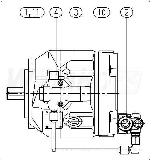 Axial piston variable pump A10V, swashplate design, open circuit, nominal pressure 280 bar, maximum pressure 350 bar. Series 31. Geometric displacement 45 cm3. Pressure-flow power control.