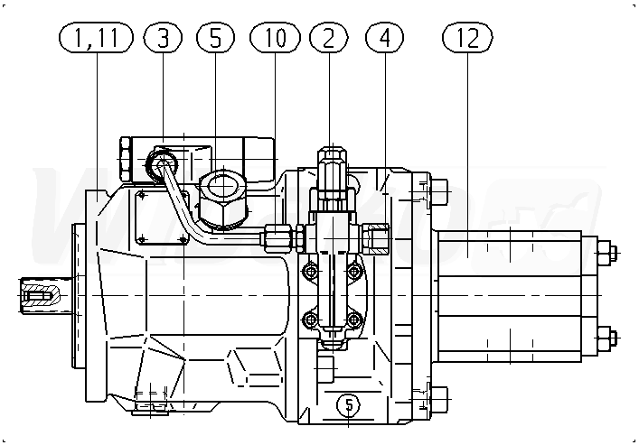 Axial piston variable pump A10V, swashplate design, open circuit, nominal pressure 280 bar, maximum pressure 350 bar. Series 31. Geometric displacement 45 cm3. Pressure-flow power control. Drive splined shaft ANSI B92.1a for higher input torque. Mounting flange ISO 3019-1 (SAE) 2-hole. SAE flange ports according to J518. Working ports metric. Fastening thread metric; lateral top bottom for through drive.