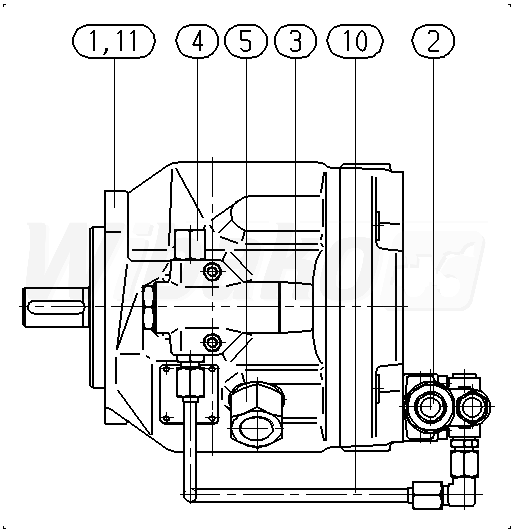 Axial piston variable pump A10V, swashplate design, open circuit, nominal pressure 280 bar, maximum pressure 350 bar. Series 31. Geometric displacement 45 cm3. Pressure-flow power control. DEUTSCH - molded connector, 2-pin, without suppressor diode.