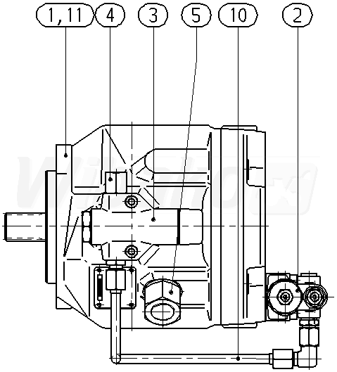 Axial piston variable pump A10V, swashplate design, open circuit, nominal pressure 280 bar, maximum pressure 350 bar. Series 31. Geometric displacement 45 cm3. Pressure-flow power control. Sealing material: FKM (fluoroelastomer). Drive splined shaft ANSI B92.1a for higher input torque. Mounting flange ISO 3019-1 (SAE) 2-hole. SAE flange ports according to J518. Working ports metric. Fastening thread metric; rear not for through drive. Without through drive.