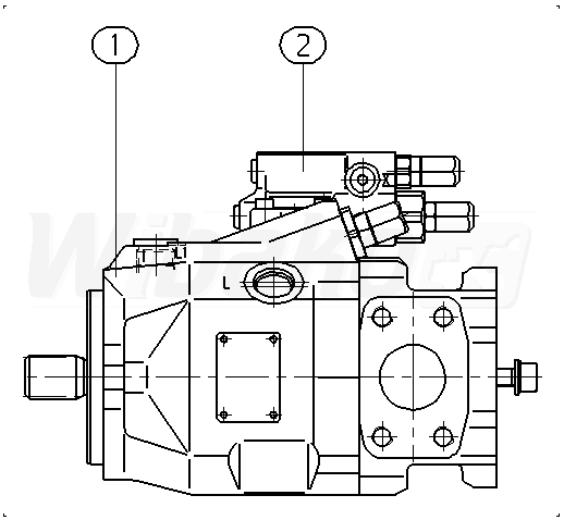 Axial piston variable pump A10VO, swashplate design, open circuit, nominal pressure 250 bar, maximum pressure 315 bar. Series 52. Geometric displacement 45 cm3. Pressure controller with flow controller, hydraulic, X-T open. Directions of rotation: clockwise (viewed on drive shaft). Splined shaft ISO 3019-1, standard. Mounting flange ISO 3019-1 (SAE) 2-hole. SAE flange ports, fastening thread metric, laterally opposite, for through drive. Through drive flange ISO 3019-1 82-2 (A) , hub for splined shaft 5/8 in 9T16/32DP.