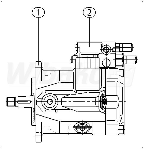 Axial piston variable pump A10VO, swashplate design, open circuit, nominal pressure 250 bar, maximum pressure 315 bar. Series 52. Geometric displacement 45 cm3. Pressure controller with flow controller, hydraulic, X-T plugged with flushing function. Directions of rotation: counter-clockwise (viewed on drive shaft). Mounting flange ISO 3019-1 (SAE) 2-hole.