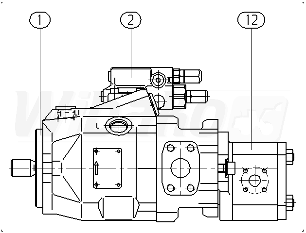 Axial piston variable pump A10VO, swashplate design, open circuit, nominal pressure 250 bar, maximum pressure 315 bar. Series 52. Geometric displacement 45 cm3. Pressure controller with flow controller, hydraulic, X-T plugged with flushing function. Directions of rotation: counter-clockwise (viewed on drive shaft). Splined shaft ISO 3019-1, for higher torque. Mounting flange ISO 3019-1 (SAE) 2-hole.
