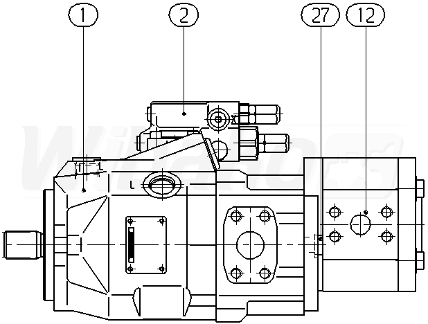 Axial piston variable pump A10VO, swashplate design, open circuit, nominal pressure 250 bar, maximum pressure 315 bar. Series 52. Geometric displacement 45 cm3. Pressure controller with flow controller, hydraulic, X-T plugged with flushing function. Directions of rotation: counter-clockwise (viewed on drive shaft). Splined shaft ISO 3019-1, standard. Mounting flange ISO 3019-1 (SAE) 2-hole. SAE flange ports, fastening thread metric, laterally opposite, for through drive.
