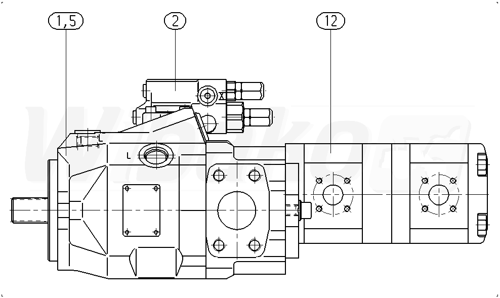 Axial piston variable pump A10VO, swashplate design, open circuit, nominal pressure 250 bar, maximum pressure 315 bar. Series 52. Geometric displacement 45 cm3. Pressure controller with flow controller, hydraulic, X-T plugged with flushing function. Directions of rotation: clockwise (viewed on drive shaft). Splined shaft ISO 3019-1, for higher torque. Mounting flange ISO 3019-1 (SAE) 2-hole. SAE flange ports, fastening thread metric, laterally opposite, for through drive.