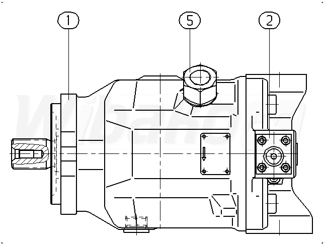 Axial piston variable pump A10V, swashplate design, open circuit, nominal pressure 280 bar, maximum pressure 350 bar. Series 31. Geometric displacement 45 cm3. Two-point control, direct operated. Drive splined shaft ANSI B92.1a, reduced diameter, limited suitability for through drive. Mounting flange ISO 3019-1 (SAE) 2-hole. SAE flange ports according to J518. Working ports metric. Fastening thread metric; lateral top bottom for through drive. Without through drive.
