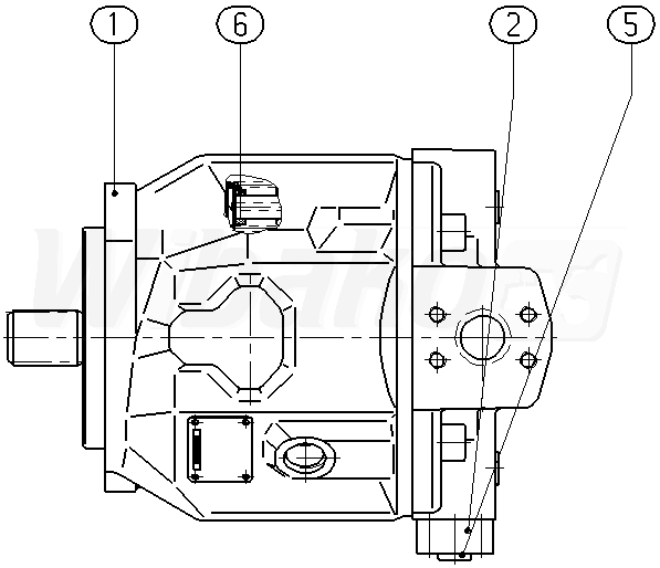Axial piston variable pump A10V, swashplate design, open circuit, nominal pressure 280 bar, maximum pressure 350 bar. Series 31. Geometric displacement 45 cm3. Two-point control, direct operated. Sealing material: FKM (fluoroelastomer). Drive splined shaft ANSI B92.1a. Mounting flange ISO 3019-1 (SAE) 2-hole. SAE flange ports according to J518 Working ports UNF. Fastening thread UNF; lateral top bottom, for through drive. Without through drive.