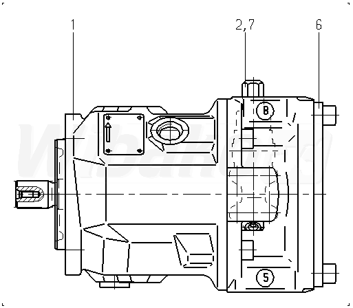 Axial piston variable pump A10V, swashplate design, open circuit, nominal pressure 280 bar, maximum pressure 350 bar. Series 31. Geometric displacement 45 cm3. Pressure controller, hydraulic. Drive splined shaft ANSI B92.1a. Mounting flange ISO 3019-1 (SAE) 2-hole. SAE flange ports according to J518 Working ports UNF. Fastening thread UNF; lateral top bottom, for through drive. Through drive. Flange ISO 3019-1 101-2 (B) . Hub for splined shaft 7/8 in 13T 16/32DP.