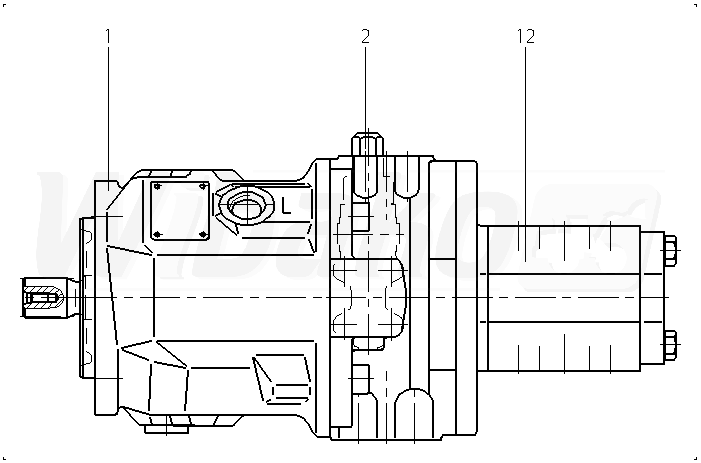 Axial piston variable pump A10V, swashplate design, open circuit, nominal pressure 280 bar, maximum pressure 350 bar. Series 31. Geometric displacement 45 cm3. Pressure controller, hydraulic. Drive splined shaft ANSI B92.1a. Mounting flange ISO 3019-1 (SAE) 2-hole. SAE flange ports according to J518 Working ports UNF. Fastening thread UNF; lateral top bottom, for through drive.