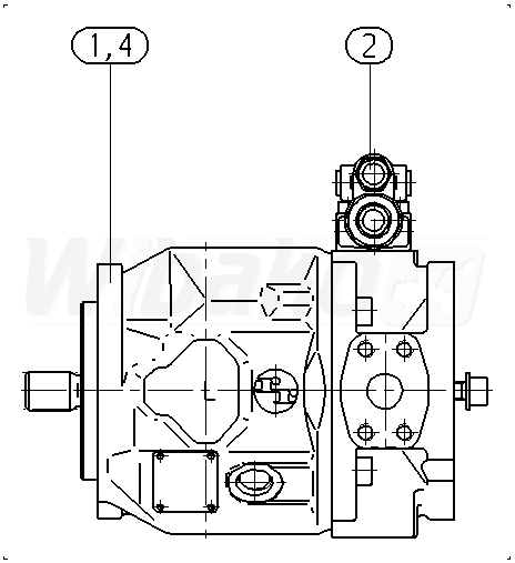 Axial piston variable pump A10V, swashplate design, open circuit, nominal pressure 280 bar, maximum pressure 350 bar. Series 31. Geometric displacement 45 cm3. Pressure controller, hydraulic. Sealing material: FKM (fluoroelastomer). Drive splined shaft ANSI B92.1a. Mounting flange ISO 3019-1 (SAE) 2-hole. SAE flange ports according to J518 Working ports UNF. Fastening thread UNF; lateral top bottom, for through drive. Through drive. Flange ISO 3019-1 101-2 (B) . Hub for splined shaft 7/8 in 13T 16/32DP.