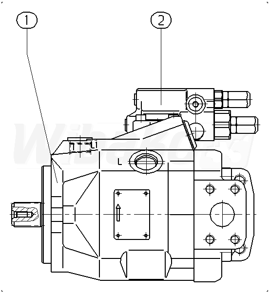 Axial piston variable pump A10VO, swashplate design, open circuit, nominal pressure 250 bar, maximum pressure 315 bar. Series 52. Geometric displacement 45 cm3. Pressure controller, hydraulic. Directions of rotation: counter-clockwise (viewed on drive shaft). Splined shaft ISO 3019-1, standard. Mounting flange ISO 3019-1 (SAE) 2-hole.