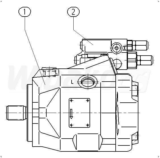 Axial piston variable pump A10VO, swashplate design, open circuit, nominal pressure 250 bar, maximum pressure 315 bar. Series 52. Geometric displacement 45 cm3. Pressure controller, hydraulic. Directions of rotation: clockwise (viewed on drive shaft). Splined shaft ISO 3019-1, standard. Mounting flange ISO 3019-1 (SAE) 2-hole.