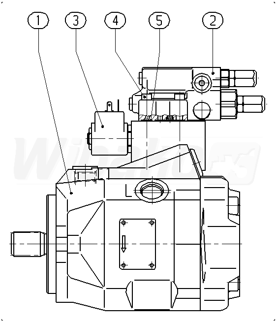 Axial piston variable pump A10VO, swashplate design, open circuit, nominal pressure 250 bar, maximum pressure 315 bar. Series 52. Geometric displacement 45 cm3. Pressure controller, hydraulic. Directions of rotation: clockwise (viewed on drive shaft). Splined shaft ISO 3019-1, standard. Mounting flange ISO 3019-1 (SAE) 2-hole.