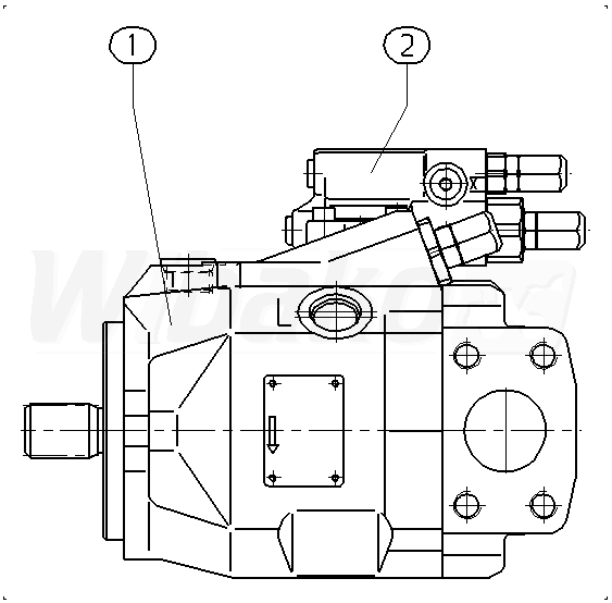 Axial piston variable pump A10VO, swashplate design, open circuit, nominal pressure 250 bar, maximum pressure 315 bar. Series 52. Geometric displacement 45 cm3. Pressure controller, hydraulic. Directions of rotation: clockwise (viewed on drive shaft). Splined shaft ISO 3019-1, standard. Mounting flange ISO 3019-1 (SAE) 2-hole.