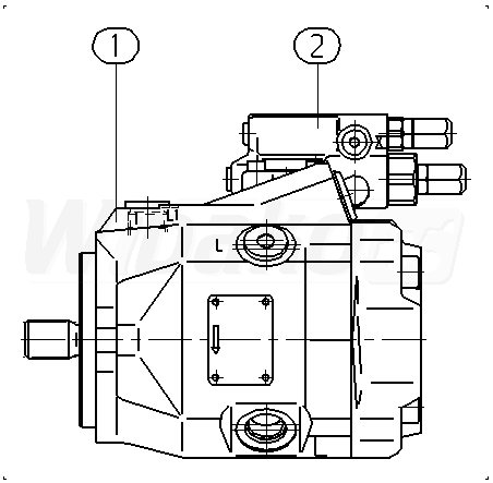 Axial piston variable pump A10VO, swashplate design, open circuit, nominal pressure 250 bar, maximum pressure 315 bar. Series 52. Geometric displacement 45 cm3. Pressure controller, hydraulic. Directions of rotation: clockwise (viewed on drive shaft). Splined shaft ISO 3019-1, reduced diameter, limited suitability for through drive. Mounting flange ISO 3019-1 (SAE) 2-hole. SAE flange ports, fastening thread metric, rear, not for through drive. Without through drive.