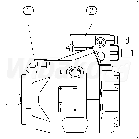Axial piston variable pump A10VO, swashplate design, open circuit, nominal pressure 250 bar, maximum pressure 315 bar. Series 52. Geometric displacement 45 cm3. Pressure controller, hydraulic. Directions of rotation: clockwise (viewed on drive shaft). Splined shaft ISO 3019-1, reduced diameter, limited suitability for through drive. Mounting flange ISO 3019-1 (SAE) 2-hole.