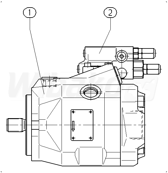 Axial piston variable pump A10VO, swashplate design, open circuit, nominal pressure 250 bar, maximum pressure 315 bar. Series 52. Geometric displacement 45 cm3. Pressure controller, hydraulic. Directions of rotation: clockwise (viewed on drive shaft). Splined shaft ISO 3019-1, reduced diameter, limited suitability for through drive. Mounting flange ISO 3019-1 (SAE) 2-hole.