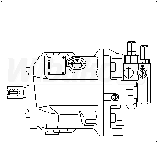 Axial piston variable pump A10V, swashplate design, open circuit, nominal pressure 280 bar, maximum pressure 350 bar. Series 31. Geometric displacement 45 cm3. Pressure controller with pressure cut-of, hydraulic, remote controlledSealing material: FKM (fluoroelastomer). Drive splined shaft ANSI B92.1a, reduced diameter, limited suitability for through drive. Mounting flange ISO 3019-1 (SAE) 2-hole. SAE flange ports according to J518 Working ports UNF. Fastening thread UNF; rear, not for through drive. Without through drive.