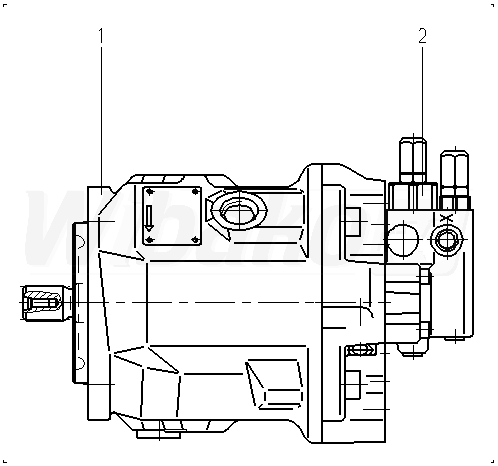 Axial piston variable pump A10V, swashplate design, open circuit, nominal pressure 280 bar, maximum pressure 350 bar. Series 31. Geometric displacement 45 cm3. Pressure controller with pressure cut-of, hydraulic, remote controlledDrive splined shaft ANSI B92.1a, reduced diameter, limited suitability for through drive. Mounting flange ISO 3019-1 (SAE) 2-hole. SAE flange ports according to J518 Working ports UNF. Fastening thread UNF; rear, not for through drive. Without through drive.