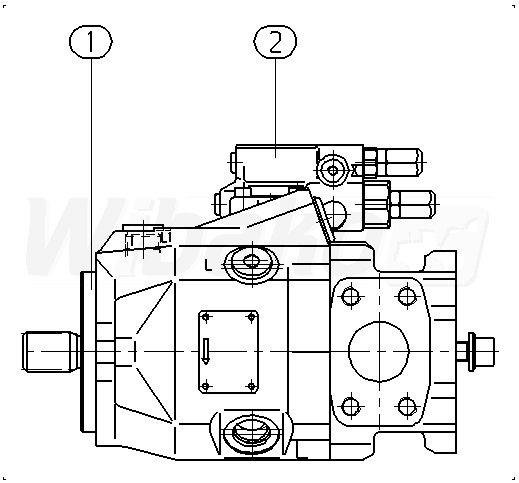 Axial piston variable pump A10VO, swashplate design, open circuit, nominal pressure 250 bar, maximum pressure 315 bar. Series 52. Geometric displacement 45 cm3. Pressure controller with pressure cut-off, hydraulic, remote controlled. Directions of rotation: clockwise (viewed on drive shaft). Splined shaft ISO 3019-1, standard. Mounting flange ISO 3019-1 (SAE) 2-hole. SAE flange ports, fastening thread metric, laterally opposite, for through drive. Through drive flange ISO 3019-1 101-2 (B) , hub for splined shaft 7/8 in 13T16/32DP.