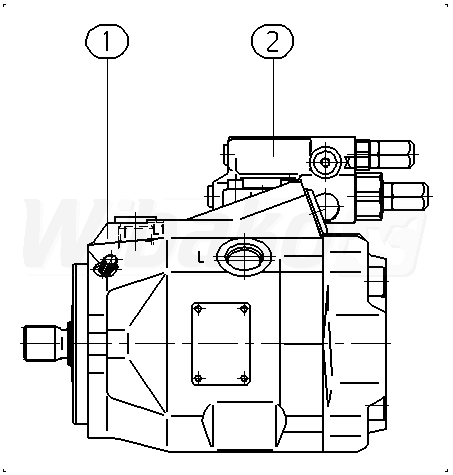 Axial piston variable pump A10VO, swashplate design, open circuit, nominal pressure 250 bar, maximum pressure 315 bar. Series 52. Geometric displacement 45 cm3. Pressure controller with pressure cut-off, hydraulic, remote controlled. Directions of rotation: clockwise (viewed on drive shaft). Splined shaft ISO 3019-1, reduced diameter, limited suitability for through drive. Mounting flange ISO 3019-1 (SAE) 2-hole. SAE flange ports, fastening thread metric, rear, not for through drive. Without through drive.