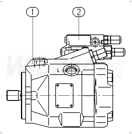 Axial piston variable pump A10VO, swashplate design, open circuit, nominal pressure 250 bar, maximum pressure 315 bar. Series 52. Geometric displacement 45 cm3. Pressure controller with pressure cut-off, hydraulic, remote controlled. Directions of rotation: clockwise (viewed on drive shaft). Splined shaft ISO 3019-1, reduced diameter, limited suitability for through drive. Mounting flange ISO 3019-1 (SAE) 2-hole.
