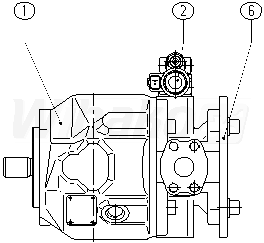 Axial piston variable pump A10V, swashplate design, open circuit, nominal pressure 280 bar, maximum pressure 350 bar. Series 31. Geometric displacement 45 cm3. Pressure controller with pressure cut-of, electrical, negative control U = 24 V. Sealing material: FKM (fluoroelastomer). Drive splined shaft ANSI B92.1a. Mounting flange ISO 3019-1 (SAE) 2-hole. SAE flange ports according to J518 Working ports UNF. Fastening thread UNF; lateral top bottom, for through drive.