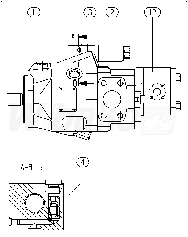 Axial piston variable pump A10VO, swashplate design, open circuit, nominal pressure 250 bar, maximum pressure 315 bar. Series 52. Geometric displacement 45 cm3. Directions of rotation: clockwise (viewed on drive shaft). Splined shaft ISO 3019-1, standard. Mounting flange ISO 3019-1 (SAE) 2-hole.