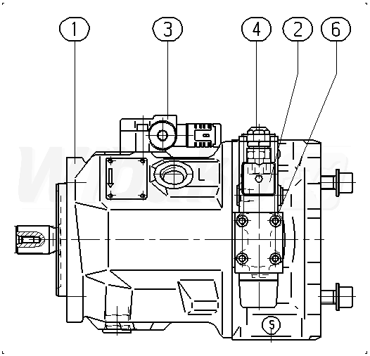 Axial piston variable pump A10V, swashplate design, open circuit, nominal pressure 280 bar, maximum pressure 350 bar. Series 31. Geometric displacement 45 cm3. Drive splined shaft ANSI B92.1a. Mounting flange ISO 3019-1 (SAE) 2-hole. SAE flange ports according to J518 Working ports UNF. Fastening thread UNF; lateral top bottom, for through drive.