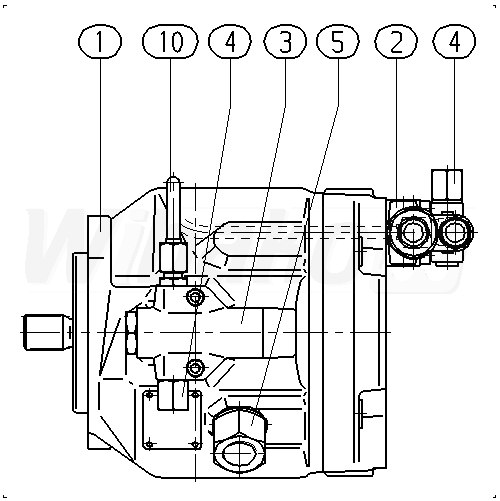 Axial piston variable pump , swashplate design, open circuit, nominal pressure 280 bar, maximum pressure 350 bar. Series 31. High-speed version. Geometric displacement 10 cm3. Drive splined shaft ANSI B92.1a. Mounting flange ISO 3019-1 (SAE) 2-hole. SAE flange ports according to J518. Working ports metric. Fastening thread metric; rear not for through drive. Without through drive.