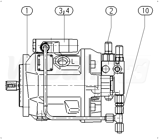Axial piston variable pump , swashplate design, open circuit, nominal pressure 280 bar, maximum pressure 350 bar. Series 31. High-speed version. Geometric displacement 10 cm3. Drive splined shaft ANSI B92.1a, reduced diameter, limited suitability for through drive. Mounting flange ISO 3019-1 (SAE) 2-hole. SAE flange ports according to J518 Working ports UNF. Fastening thread UNF; rear, not for through drive. Without through drive.