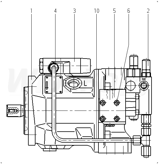 Axial piston variable pump , swashplate design, open circuit, nominal pressure 280 bar, maximum pressure 350 bar. Series 31. High-speed version. Geometric displacement 10 cm3. Sealing material: FKM (fluoroelastomer). Drive splined shaft ANSI B92.1a. Mounting flange ISO 3019-1 (SAE) 2-hole. SAE flange ports according to J518 Working ports UNF. Fastening thread UNF; lateral top bottom, for through drive. Without through drive.