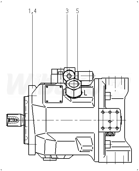 Axial piston variable pump A10V, swashplate design, open circuit, nominal pressure 280 bar, maximum pressure 350 bar. Series 31. Geometric displacement 45 cm3. Drive splined shaft ANSI B92.1a. Mounting flange ISO 3019-1 (SAE) 2-hole. SAE flange ports according to J518. Working ports metric. Fastening thread metric; lateral top bottom for through drive. Without through drive.