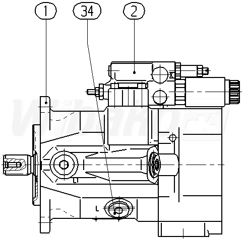 Axial piston variable pump A10VO, swashplate design, open circuit, nominal pressure 250 bar, maximum pressure 315 bar. Series 52. Geometric displacement 45 cm3. Pressure controller, electric, negative control, U = 24 V. Directions of rotation: clockwise (viewed on drive shaft). Seal: FKM (fluoroelastomer). Splined shaft ISO 3019-1, standard. Mounting flange ISO 3019-1 (SAE) 2-hole. SAE flange ports, fastening thread metric, laterally opposite, for through drive. Through drive flange ISO 3019-1 101-2 (B) , hub for splined shaft 1 in 15T16/32DP.
