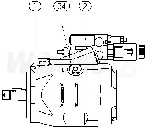 Axial piston variable pump A10VO, swashplate design, open circuit, nominal pressure 250 bar, maximum pressure 315 bar. Series 52. Geometric displacement 45 cm3. Pressure controller, electric, negative control, U = 24 V. Directions of rotation: counter-clockwise (viewed on drive shaft). Seal: FKM (fluoroelastomer). Mounting flange ISO 3019-1 (SAE) 2-hole.