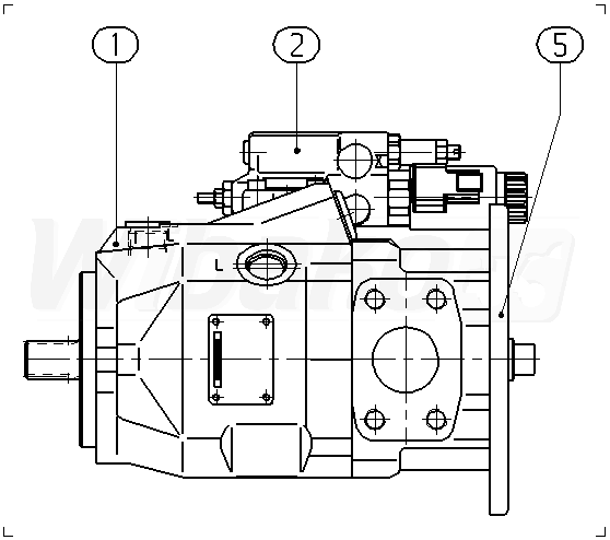 Axial piston variable pump A10VO, swashplate design, open circuit, nominal pressure 250 bar, maximum pressure 315 bar. Series 52. Geometric displacement 45 cm3. Pressure controller, electric, negative control, U = 24 V. Directions of rotation: clockwise (viewed on drive shaft). Seal: FKM (fluoroelastomer). Splined shaft ISO 3019-1, for higher torque only conditionally suitable for mounting with through drive. Mounting flange ISO 3019-1 (SAE) 2-hole. SAE flange ports, fastening thread metric, laterally opposite, for through drive. Through drive flange ISO 3019-1 101-2 (B) , hub for splined shaft 7/8 in 13T16/32DP. DEUTSCH - molded connector, 2-pin, without suppressor diode (for electric control).