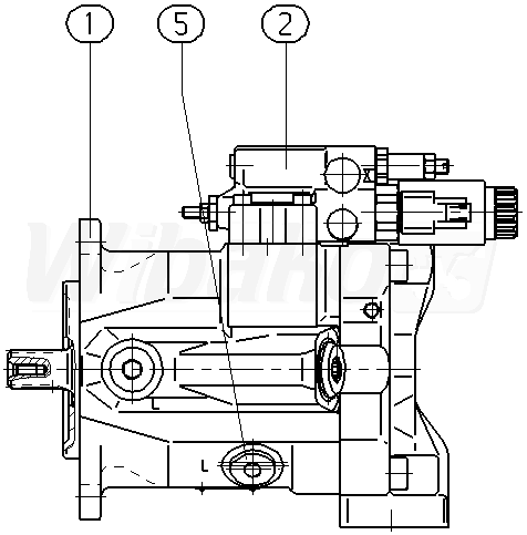 Axial piston variable pump A10VO, swashplate design, open circuit, nominal pressure 250 bar, maximum pressure 315 bar. Series 52. Geometric displacement 45 cm3. Pressure controller, electric, negative control, U = 24 V. Directions of rotation: clockwise (viewed on drive shaft). Seal: FKM (fluoroelastomer). Splined shaft ISO 3019-1, for higher torque only conditionally suitable for mounting with through drive. Mounting flange ISO 3019-1 (SAE) 2-hole. SAE flange ports, fastening thread metric, laterally opposite, for through drive. Without through drive. DEUTSCH - molded connector, 2-pin, without suppressor diode (for electric control).