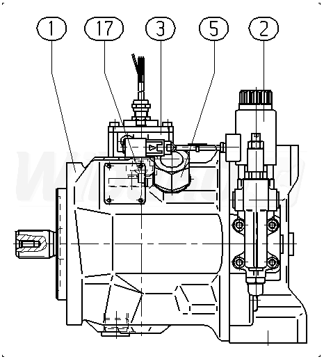 Axial piston variable pump A10V, swashplate design, open circuit, nominal pressure 280 bar, maximum pressure 350 bar. Series 31. Geometric displacement 45 cm3. Drive splined shaft ANSI B92.1a. Mounting flange ISO 3019-1 (SAE) 2-hole. SAE flange ports according to J518. Working ports metric. Fastening thread metric; lateral top bottom for through drive. Without through drive.