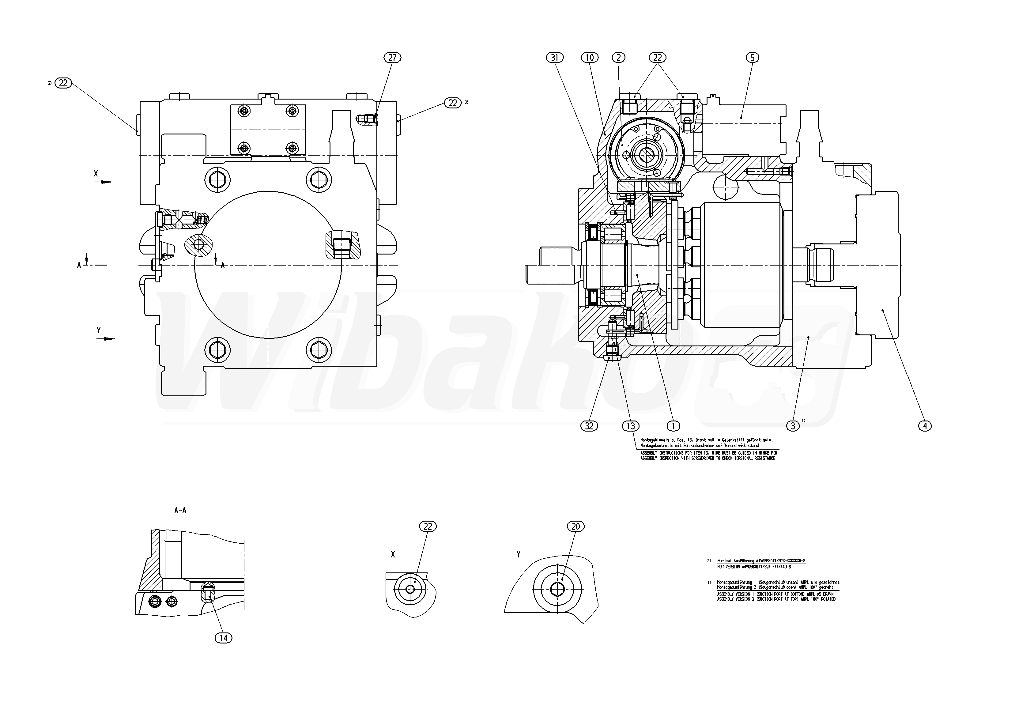 Axial piston variable pump A4VG. Geometric displacement 56 cm3. Series 3, index 2. Direction of rotation (viewed on drive shaft): clockwise. Sealing material: NBR (nitrile rubber), shaft seal in FKM (fluoroelastomer). Splined shaft DIN 5480 for single pump. Mounting flange SAE J744 2-hole.