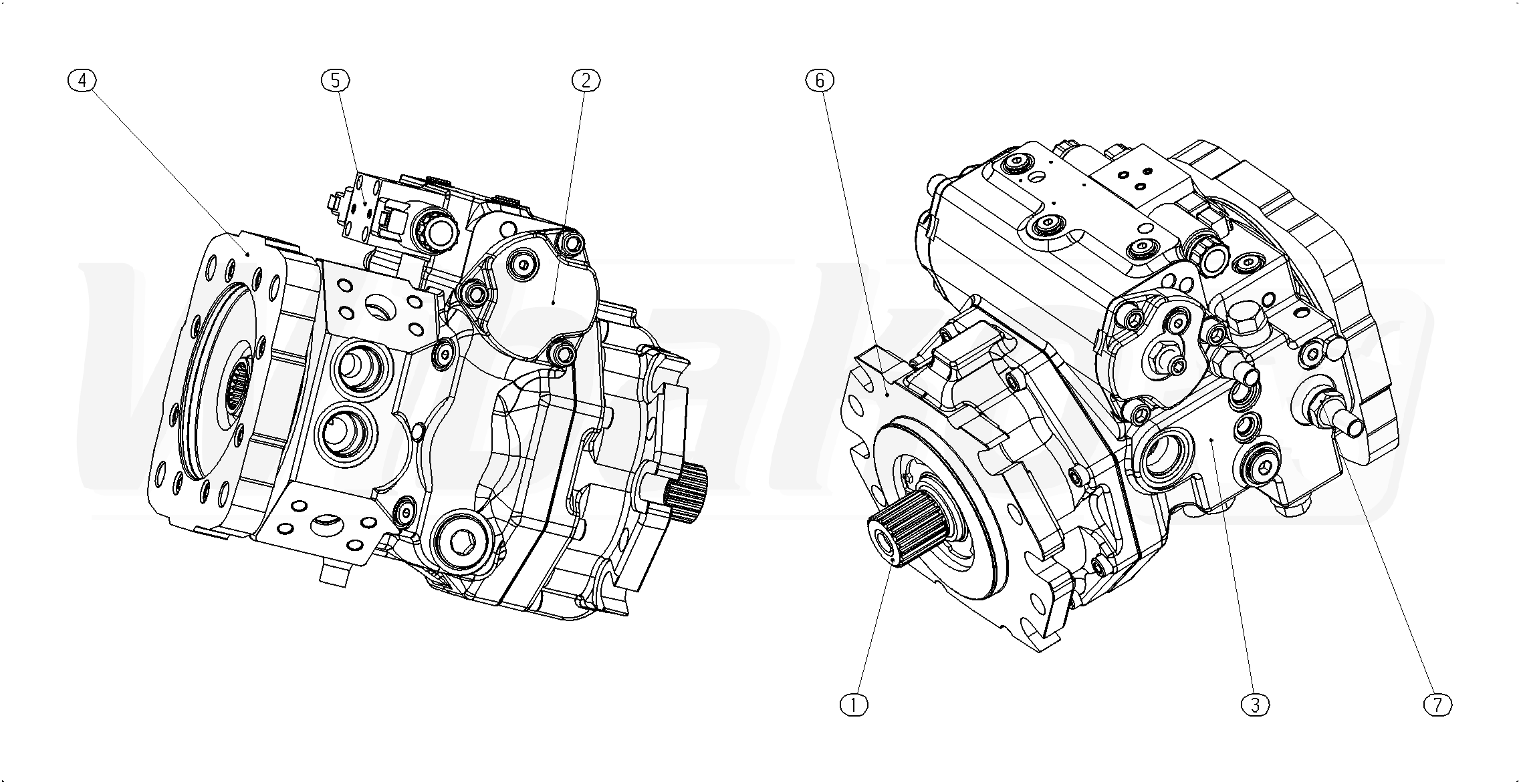 Axial piston variable pump A4VG, swashplate design, nominal pressure 450 bar, maximum pressure 500 bar. Pump, closed circuit. Geometric displacement 110 cm3. Automatic control, speed related U = 12 V. Pressure cut-off, with bypass. Fixed setting, hydraulic, mechanical. Series 40. Metric ports according to ISO 6149 with O-ring seal, metric fastening thread according to DIN 13. Direction of rotation: clockwise (viewed on drive shaft). Sealing material: NBR (nitrile rubber), shaft seal in FKM (fluoroelastomer). Mounting flange SAE J744 152-2/4. Splined shaft DIN 5480 W45×2×21×9g. SAE working port A and B, on left side (45° left). Standard rotary group, boost pump integrated, standard internal gear pump. High-pressure relief valve, direct operated, fixed setting, with low-pressure relief valve, fixed setting. Filtration in the boost pump pressure line. Ports for external boost circuit filtration (Fe and Fa). Standard version with installation variants.
