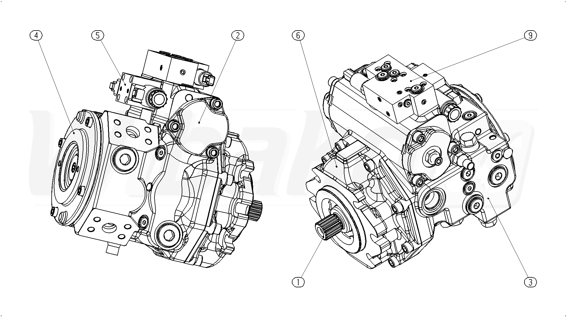 Axial piston variable pump A4VG, swashplate design, nominal pressure 450 bar, maximum pressure 500 bar. Pump, closed circuit. Geometric displacement 085 cm3. Series 40. Metric ports according to ISO 6149 with O-ring seal, metric fastening thread according to DIN 13. Direction of rotation: clockwise (viewed on drive shaft). Sealing material: NBR (nitrile rubber), shaft seal in FKM (fluoroelastomer). Mounting flange SAE J744 127-2/4. SAE working port A and B, on left side (45° left). Standard rotary group, boost pump integrated, standard internal gear pump. Flange SAE J744: diameter- 82-2 (A), mounting- horizontal, code- A2. Hub for splined shaft: diameter- 5/8 in 9T 16/32DP, code- S2. High-pressure relief valve, direct operated, fixed setting, with low-pressure relief valve, fixed setting. Filtration in the boost pump suction line.