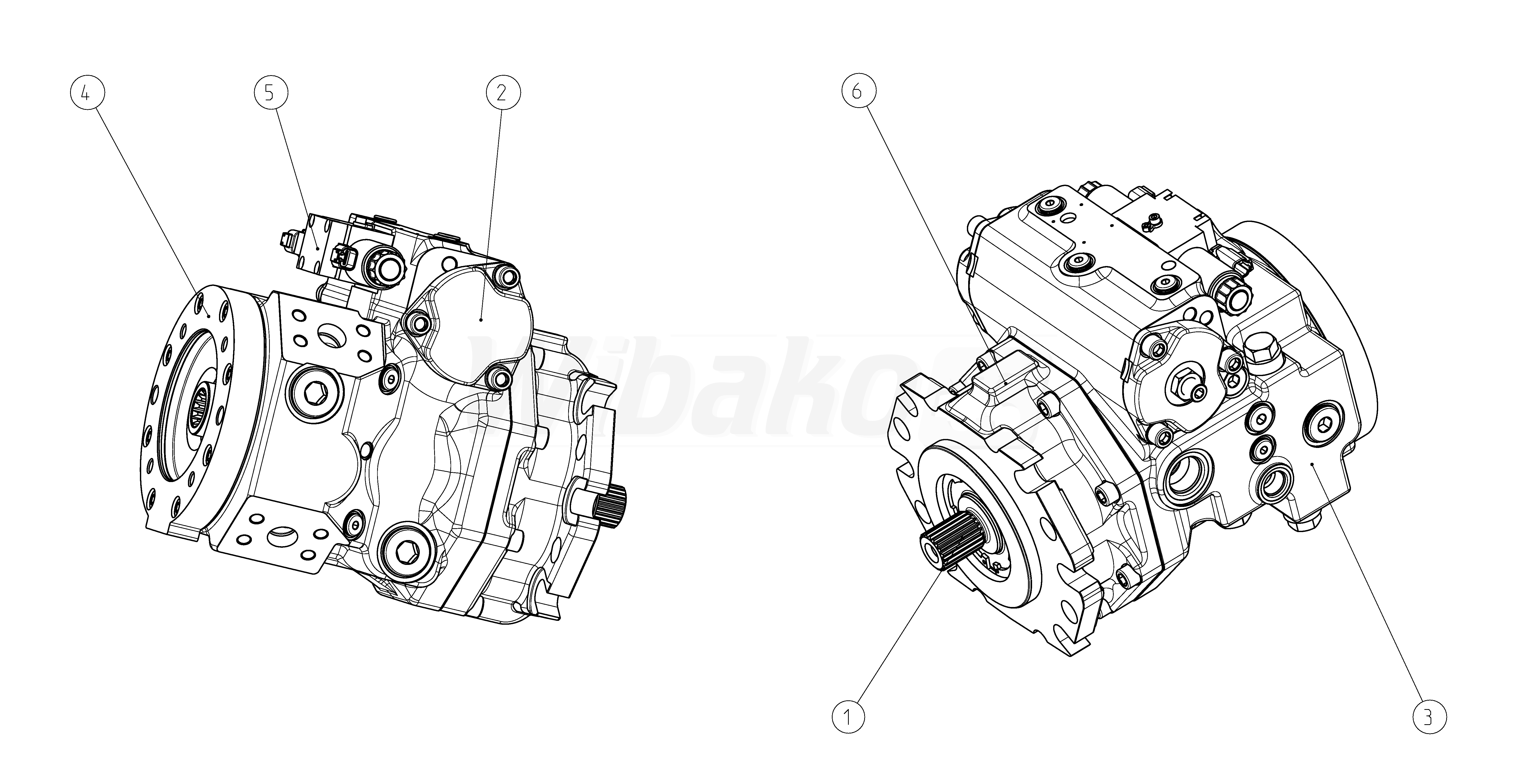 Axial piston variable pump A4VG, swashplate design, nominal pressure 450 bar, maximum pressure 500 bar. Pump, closed circuit. Geometric displacement 110 cm3. Proportional control, electric U = 24 V. Without pressure cut-off, without bypass. DEUTSCH molded connector, 2-pin – without suppressor diode. Without swivel angle sensor. Without additional function. Without DA control valve. Series 40. Metric ports according to ISO 6149 with O-ring seal, metric fastening thread according to DIN 13. Direction of rotation: clockwise (viewed on drive shaft). Sealing material: NBR (nitrile rubber), shaft seal in FKM (fluoroelastomer). Mounting flange SAE J744 152-2/4. Splined shaft ANSI B92.1a–1976 1 3/8 in 21T 16/32DP. SAE working port A and B, on left side (45° left). Standard rotary group, without boost pump. Standard version with installation variants.