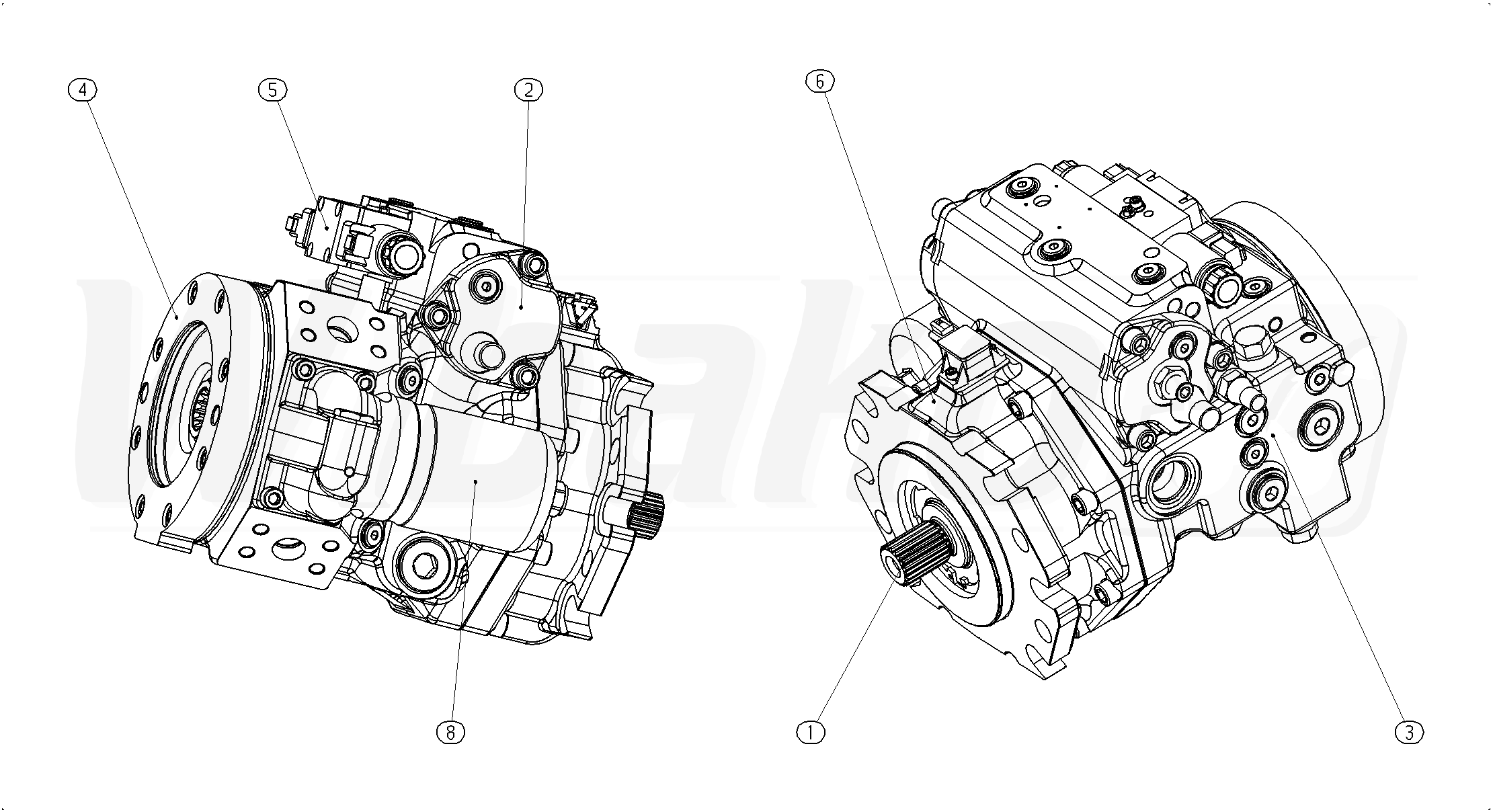 Axial piston variable pump A4VG, swashplate design, nominal pressure 450 bar, maximum pressure 500 bar. Pump, closed circuit. Geometric displacement 110 cm3. Proportional control, electric U = 12 V. Pressure cut-off, with bypass. Fixed setting, hydraulic, mechanical. DEUTSCH molded connector, 2-pin – without suppressor diode. Electric swivel angle sensor (DWS20-1, 3-pin). Mechanical stroke limiter and stroking chamber pressure port X3 X4. Without DA control valve. Series 40. Metric ports according to ISO 6149 with O-ring seal, metric fastening thread according to DIN 13. Direction of rotation: clockwise (viewed on drive shaft). Sealing material: NBR (nitrile rubber), shaft seal in FKM (fluoroelastomer). Mounting flange SAE J744 152-2/4. Splined shaft ANSI B92.1a–1976 1 3/8 in 21T 16/32DP. SAE working port A and B, on left side (45° left). High-speed rotary group, boost pump integrated, standard internal gear pump. Flange SAE J744: diameter- 127-2 (C), mounting- horizontally, code- C2. Hub for splined shaft: diameter- 1 1/4 in 14T 12/24DP, code- S7. High-pressure relief valve, direct operated, fixed setting, with low-pressure relief valve, fixed setting. Filtration in the boost pump pressure line. Attachment filter with cold start valve.