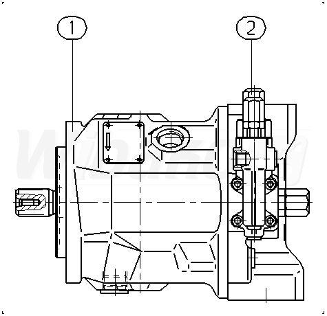 Axial piston variable pump A10VS, swashplate design, open circuit, nominal pressure 280 bar, maximum pressure 350 bar. Series 31. Geometric displacement 45 cm3. Pressure controller with pressure cut-of, hydraulic, remote controlledDrive splined shaft ANSI B92.1a. Mounting flange ISO 3019-1 (SAE) 2-hole. SAE flange ports according to J518 Working ports UNF. Fastening thread UNF; lateral top bottom, for through drive. Without through drive.