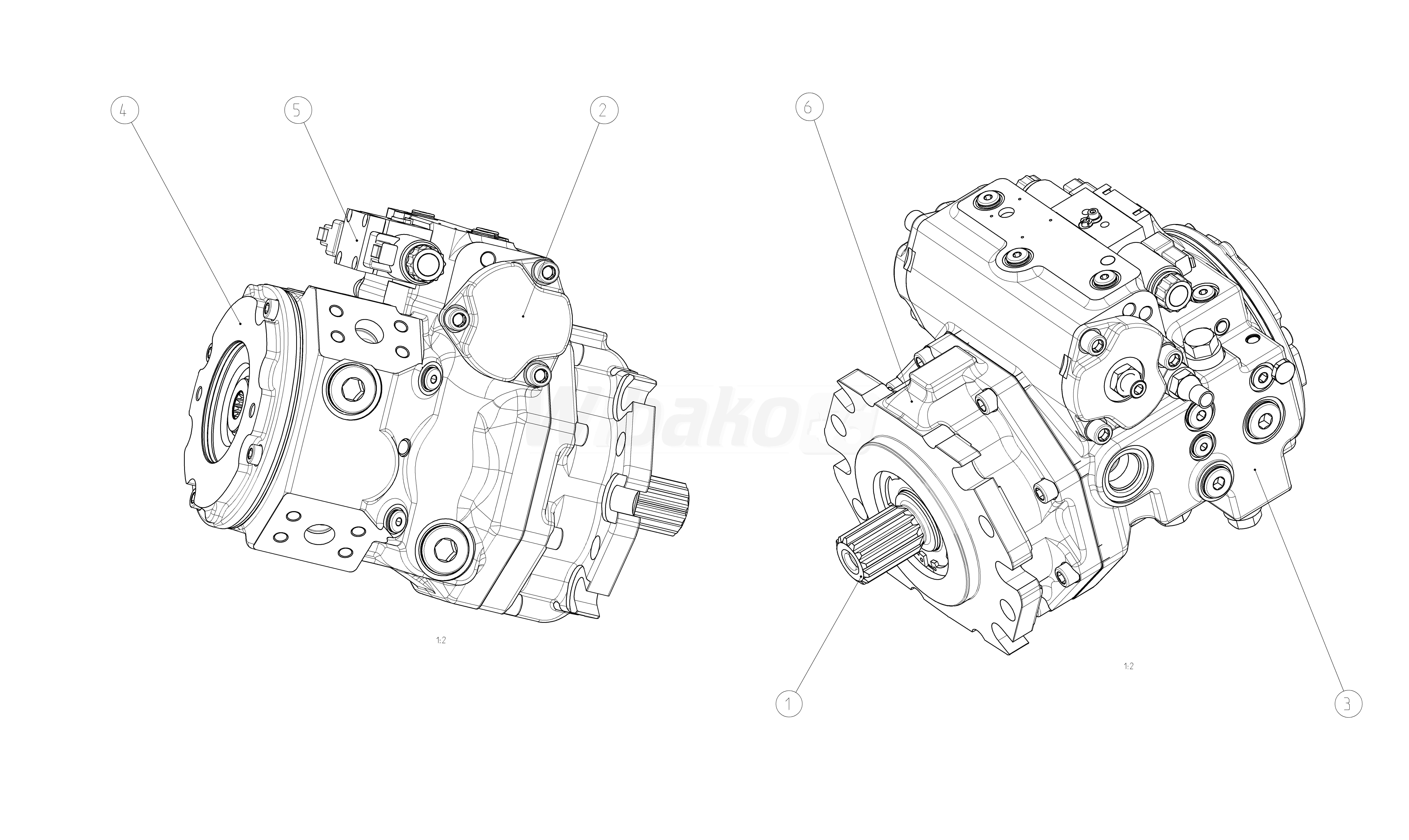 Axial piston variable pump A4VG, swashplate design, nominal pressure 450 bar, maximum pressure 500 bar. Pump, closed circuit. Geometric displacement 110 cm3. Proportional control, electric U = 24 V. Pressure cut-off, with bypass. Fixed setting, hydraulic, mechanical. DEUTSCH molded connector, 2-pin – without suppressor diode. Without swivel angle sensor. Without additional function. Without DA control valve. Series 40. Metric ports according to ISO 6149 with O-ring seal, metric fastening thread according to DIN 13. Direction of rotation: counter-clockwise (viewed on drive shaft). Sealing material: NBR (nitrile rubber), shaft seal in FKM (fluoroelastomer). Mounting flange SAE J744 152-2/4. Splined shaft ANSI B92.1a–1976 1 3/4 in 13T 8/16DP. SAE working port A and B, on left side (45° left). Standard rotary group, boost pump integrated, standard internal gear pump. Flange SAE J744: diameter- 101-2 (B), mounting- horizontal, code- B2. Hub for splined shaft: diameter- 7/8 in 13T 16/32DP, code- S4. High-pressure relief valve, direct operated, fixed setting, with low-pressure relief valve, fixed setting. Filtration in the boost pump suction line.